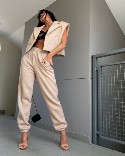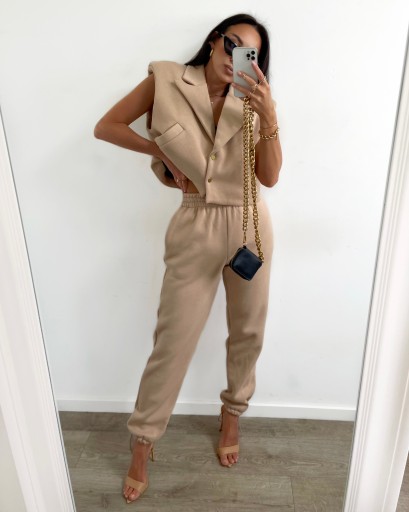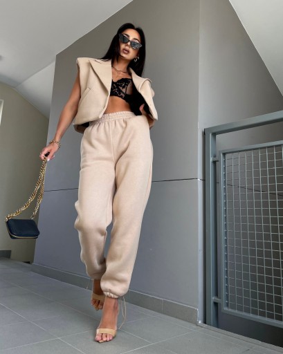 Комплект спортивного костюма La Milla, жилет, брюки бежевого цвета, универсальный размер.