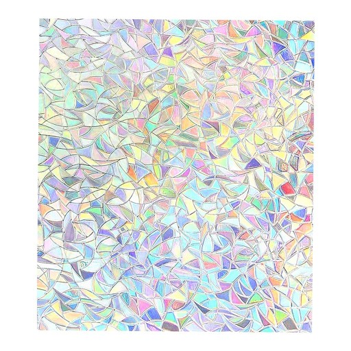 film Not Colourful - Bardzo niski poziom prywatności. Sama folia okienna 3D w rzeczywistości nie ma koloru. Jednak dzięki specjalnej konstrukcji lasera 3D pokaże kolorowy efekt wizualny, gdy światło słoneczne padnie na folię po instalacji. Idealny do dekoracji domu DIY, ale nie do łazienki.
