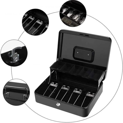 Kasetka na pieniądze idealnie nadaje się do użytku w domu, biurze, sklepach, na targach, w szkołach, a także podczas różnorodnych wydarzeń, gdzie niezbędne jest bezpieczne przechowywanie gotówki i innych wartościowych przedmiotów.