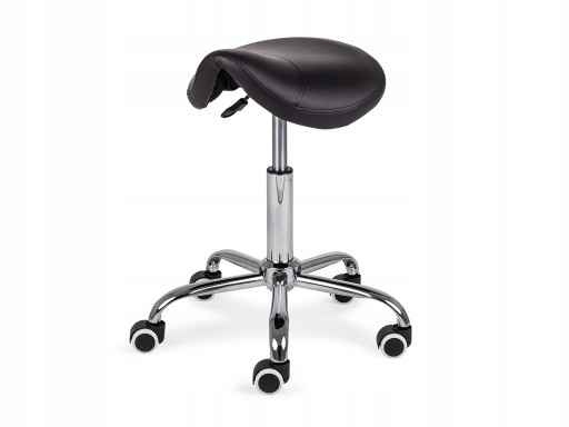Nowoczesny taboret obrotowy z profilowanym siedziskiem w kształcie siodła, wyposażony w regulację wysokości za pomocą sprężyny gazowej oraz kółka z dodatkową warstwą PU. Jest idealnym rozwiązaniem do salonów kosmetycznych, fryzjerskich, gabinetów masażu, fizjoterapii oraz placówek medycznych. Sprawdzi się również jako wygodna alternatywa dla tradycyjnych krzeseł obrotowych w domowym użytku.