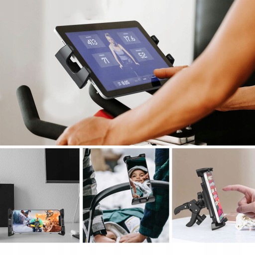 【Uchwyt na tablet treningowy w domu】 Ten uchwyt na rower do tabletu obsługuje aplikację tabletu do wyświetlania raportów z domowej trasy treningowej, bieżni, treningu eliptycznego, treningu orbitalnego lub rolkowego. Ponadto ten uchwyt nadaje się również do zagłówków samochodowych / uchwytów mikrofonowych.