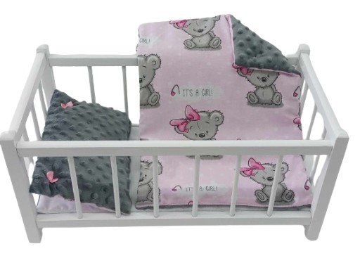 BIAŁE, DREWNIANE ŁÓŻECZKO Z KOMPLETEM POŚCIELI (3 elementy)