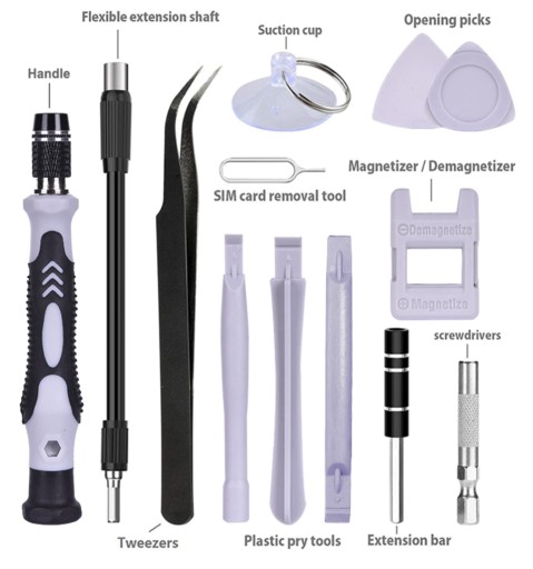 Niezastąpiony również w domu każdego majsterkowicza. Zestaw składa się z dwuskrzydłowego pudełka. Pierwsza strona zawiera zestaw plastikowych otwieraków o różnym kształcie i rozmiarze, uchwyt (rękojeść) wraz z 3 przedłużkami, pęsetę oraz inne akcesoria.