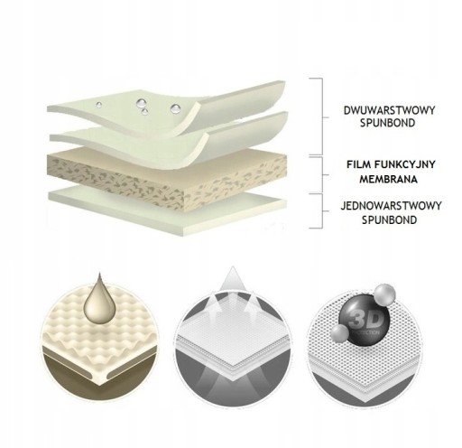 ⭐ Boki pokrowca, są natomiast 2-warstwowe, wykonane z dwuwarstwowej włókniny SPUNBOND. Boki pokrowca są wysokoparoprzepuszczalne i bardzo trudnoprzemakalne.