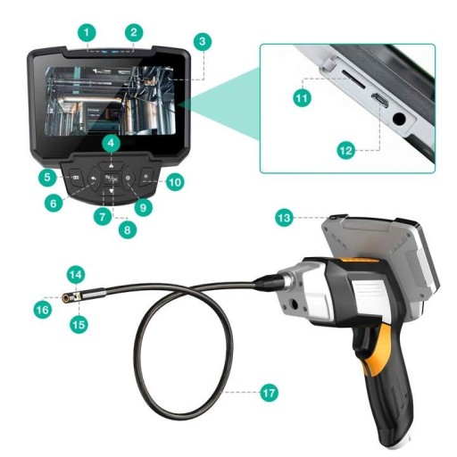 ✔️ KAMERA INSPEKCYJNA MOŻE BYĆ UŻYWANA W KAŻDYM MIEJSCU - OBSŁUGA JEST PROSTA I BARDZO WYGODNA DZIĘKI ERGONOMICZNEJ KLAWIATURZE Z PRZYCISKAMI.