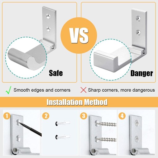 ♔Bezpieczniejszy Projekt♔: Krawędzie haczyków do przechowywania płaszczy są zaprojektowane z kątami rozwartymi, które są zbliżone do okrągłych. Ten projekt jest bardziej zaawansowany, aby uniknąć obrażeń spowodowanych kolizjami.