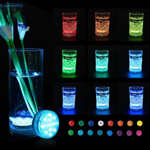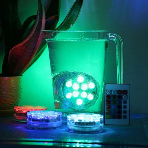 IP68 Wodoodporny, 10* 5050RGB diod LED, które można zanurzyć w wodzie. Zdalne 16 statycznych kolorów +4 (flash/stroboskop/fade i smooth) + regulowana jasność.