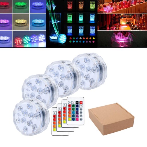 10 zatapialnych świateł LED RGB Baseny Światła stawu z przyssawką 4 kontrolera