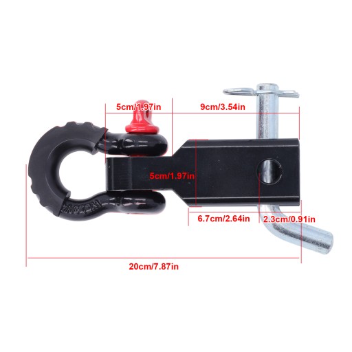 4. Podwójne otwory na sworzeń zaczepowy: Elastyczne do podłączenia szekli w poziomie lub w pionie, można podłączyć pasek holowniczy w celu odzyskania pojazdu.