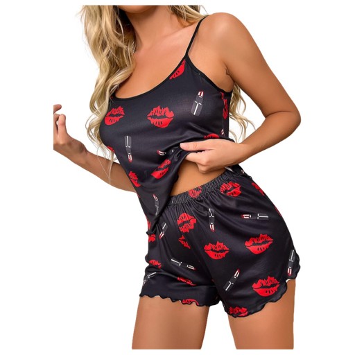 PIŻAMKA DAMSKA PIŻAMA SPODENKI KOMPLET USTA