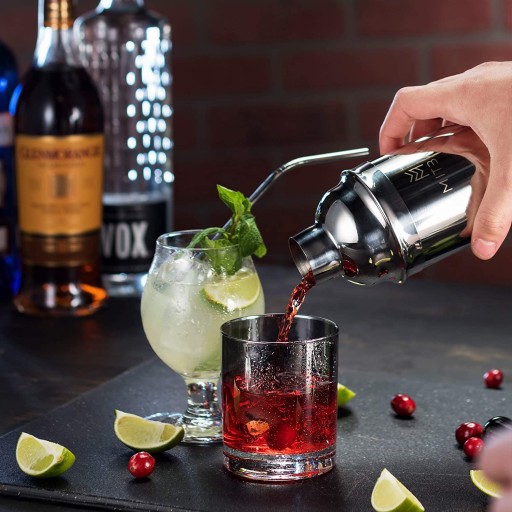 Oferujemy wysokiej jakości zestaw barmański 11-elementowy ze stali nierdzewnej wyposażony w podstawowe elementy do wykonania drinków, kawy i mieszania oraz łączenia kompozycji smakowych do koktajli. Wszystkie elementy zestawu posiadają dopuszczenie do kontaktu z żywnością zatwierdzone przez polski urząd sanitarno-epidemiologiczny. Materiał nie wpływa na zapach i smak wykonywanych koktajli. Shaker posiada wbudowane sitko pozwalające oddzielić koktajl od lodu.