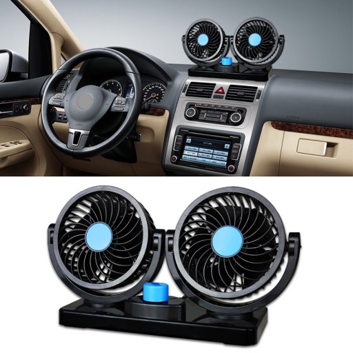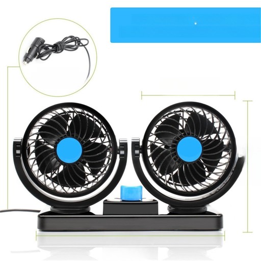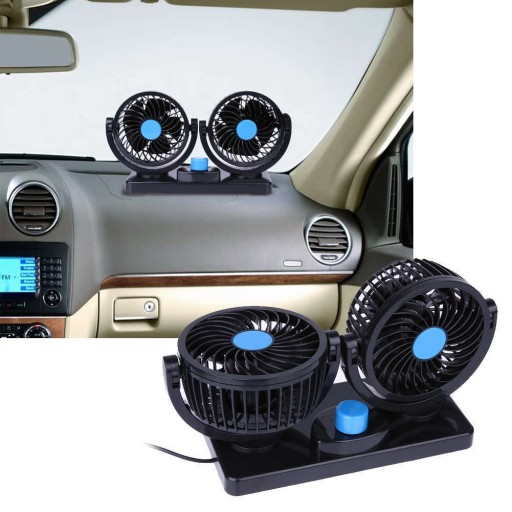 ✅1 * 12V wentylator samochodowy z podwójną głowicą obrotową 360° 2 regulowane wentylatory elektryczne na desce rozdzielczej z odpinaną taśmą samoprzylepną Cichy, mocny wentylator do pojazdu