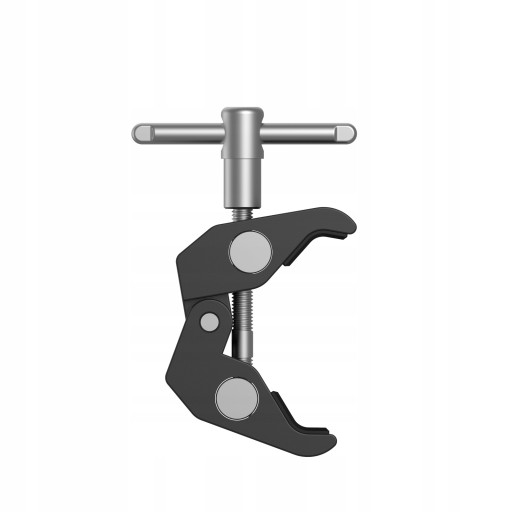 【SUPER ZACISK】 Ten super fajny zacisk został wykonany z lekkiego stopu aluminium, jest wyposażony w gwint 1/4"-20 i 3/8"-16 i można go zamontować praktycznie wszędzie, na przykład na kamerach, lampach, parasolach, hakach, półkach, szkle, poprzeczkach, a nawet innych super zaciskach. Może otwierać się maksymalnie na 54 mm i minimalnie na 15 mm