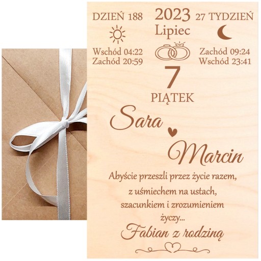 DREWNIANA PAMIĄTKA - KARTKA NA ŚLUB - PREZENT NA WESELE GRAWER