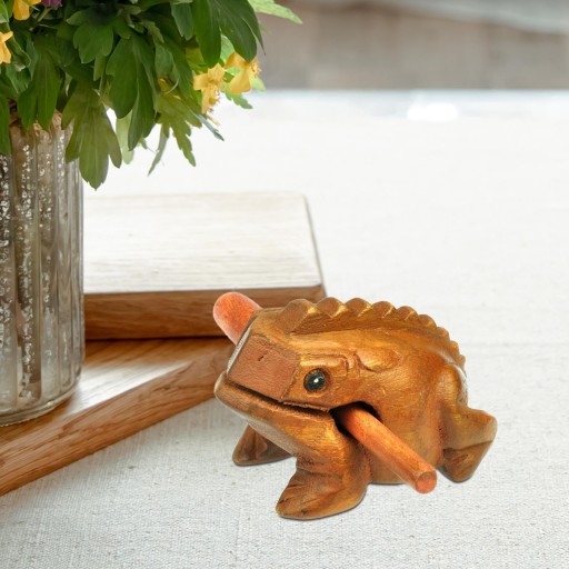 [MATERIAŁ]Ten instrument guiro jest wykonany z drewna, które może być wielokrotnie użyte. Wspaniałe dźwięki wydobywające się z tej małej żaby