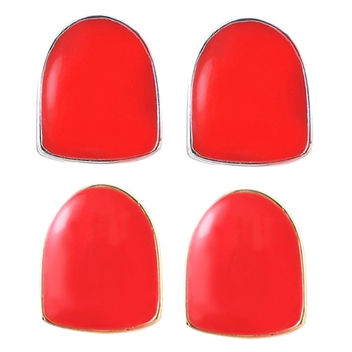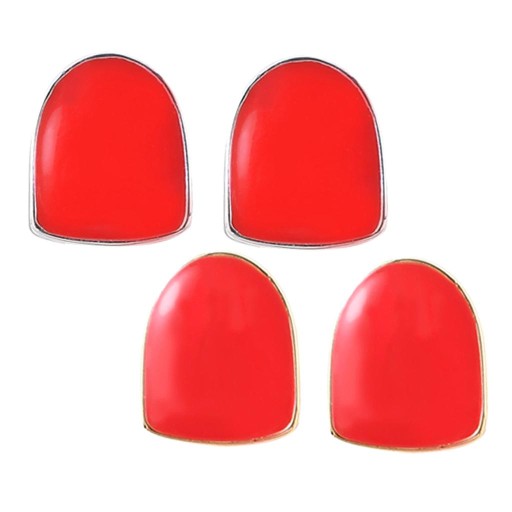 2 Szt. Czerwone Pojedyncze Zęby Grill Czapka Hip Hop Grill Hollowen Akcesoria Złoto