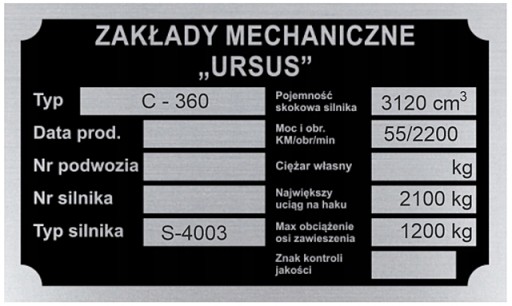 Oferta dotyczy tabliczki (1szt.) URSUS C360 + znakowanie