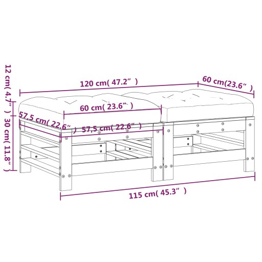 vidaXL Садовые подставки для ног с подушками, 2 шт., сосна медовая