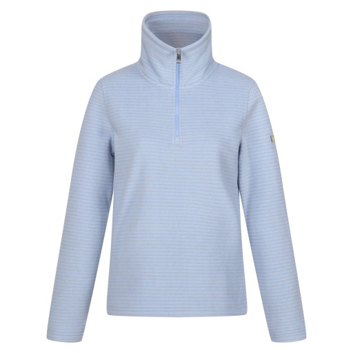 Damski ciepły polar z wysokim kołnierzem.Regatta Solenne to całoroczny damski polar, który wykonaliśmy w naszej serii Symmetry. Dzięki niej, specjalnie ułożone włókna polarowe są bardziej zbite i tym samym nie mechacą się w trakcie dłuższego użytkowania. Pozwoli Ci to na noszenie tej wygodnej bluzy przez wiele sezonów.Model posiada praktyczne rozpięcie pod szyją oraz wysoki kołnierz, który skutecznie osłoni Twoją szyję w trakcie jesienno-zimowych spacerów, zastępując tym samym zapomniany z dołu szal czy chustę. 220 g/m² 88% poliester/12% zrównoważony bawełniany polar w paski. Zamek błyskawiczny o długości 1/4. Obniżony dół. Technologia: Symmetry: Szybkoschnący, łatwy w pielęgnacji, komfortowy polar z antymechaconym wykończeniem. Materiał: 88% Poliester, 12% Bawełna.