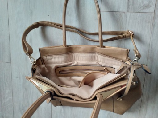Torebka jest w bardzo dobrym stanie, ale odczepił się przedni znaczek z logo, można przyczepić.