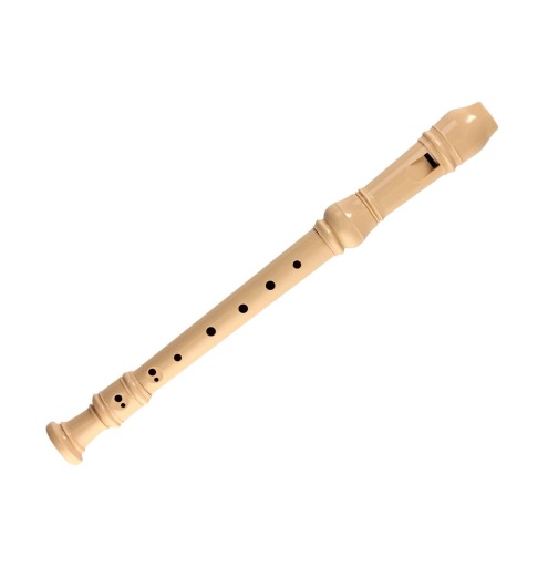 Flet wykonany z trwałego tworzywa ABS w kolorze kości słoniowej, w zestawie przyrząd do czyszczenia, pakowany w etui z tworzywa.