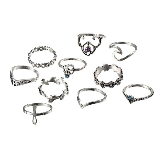Bardzo popularne pierścionki w stylu vintage, zestaw 10 sztuk,