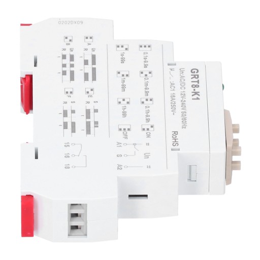 Typ artykułu: Przekaźnik czasowy Funkcja: A, B, E, F Zacisk zasilania: A1-A2 Znamionowe napięcie zasilania sterującego: AC/DC 12-240 V (50-60 Hz) Pobór mocy: AC 0,09-3 VA/DC 0,05-1,7 W Pobór mocy: AC maksymalnie 6 VA/1,3 W Dopuszczalny zakres wahań zasilania: -15%; +10% Znamionowe napięcie wytrzymywane impulsu: 2,5 kV Znamionowe napięcie izolacji: 250 V Wskaźnik zasilania: Zielona dioda LED Zakres opóźnienia: 0,1 sekundy -99 godzin, NO, NC Metoda ustawiania: Ustawienie wybierania cyfrowego Dokładność opóźnienia: 1% Powtarzalność: 0,2% Błąd wahań temperatury: 0,05%/℃, przy=20℃ (0,05%, przy=689℉) Parametry styku wyjściowego: 1 zestaw styków konwersyjnych: Ith: 16 A: AC-15: Ue/le: 250 V/5 A Minimalna moc przełączania: 500 mW Wskaźnik przekaźnika wyjściowego: Czerwona dioda LED Żywotność mechaniczna: 1x100000000 Żywotność elektryczna (obciążenie rezystancyjne): 1x1000000 Czas resetowania: Maksymalnie 200 ms Temperatura środowiska pracy: -20℃-+55℃ Przechowywanie i transport Temperatura otoczenia: -35℃-+75℃ Metoda instalacji: Instalacja na szynie 35 mm Poziom ochrony: IP20 Miejsce instalacji: Dowolna Wysokość instalacji: Około 2000 metrów / 6561,7 stóp Stopień zanieczyszczenia: 2 Pojemność okablowania: 1x2,5 mm2 lub 2x1,5 mm2 0,4 Nm
