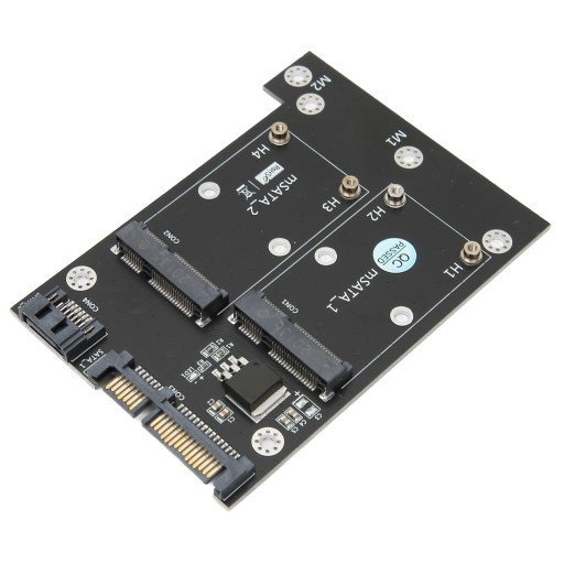 1、MSATA SSD to SATA: All in one mSATA SSD to SATA adapter, using it can easily connect dual mSATA SSD to any SATA3 port. 2、Support: Support full size (50.95x30mm) mSATA SSD, support high speed SATA3 6Gbps mass storage interface. 3、Fast Reading Speed: Using sophisticated production technology, the adapter card has a fast reading speed, up to 520MB/s. 4、Plug and Play: Transparent to the operating system, no software driver required, plug and play, simple operation and easy to use. 5、High Quality Materials: Made of high quality PCB, the adapter card is sturdy, durable, not easily damaged, and has a long service life.