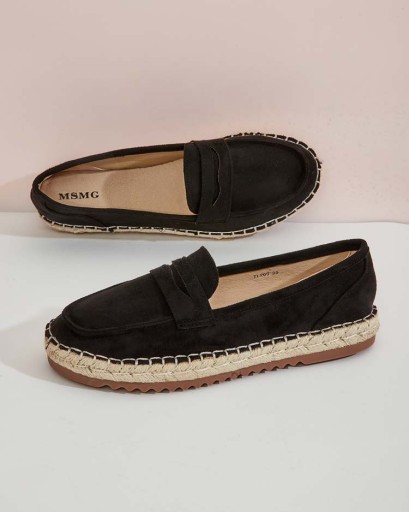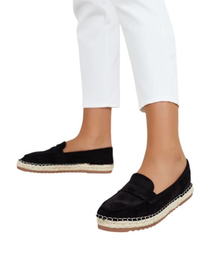 Klasyczne damskie mokasyny na płaskiej podeszwie. Model jest wykonany ze skóry ekologicznej zamszowej i wkładki ze skóry ekologicznej. Podeszwa zdobiona jutowym sznurkiem. Idealna baza na co dzień!
