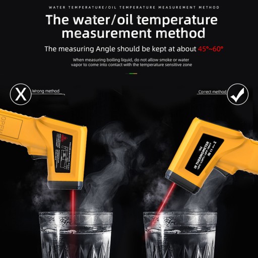 1. NIE NADAJE SIĘ DLA LUDZI: Ten termometr przemysłowy nie jest przeznaczony do pomiaru temperatury ciała. Mierzy temperaturę powierzchni przedmiotów i cieczy i nie może dokładnie zmierzyć temperatury wewnętrznej, co czyni go nieodpowiednim do pomiaru temperatury ludzi i zwierząt. 2, WYSOKA DOKŁADNOŚĆ: Wyposażony w czujnik temperatury o wysokiej czułości, ten termometr na podczerwień może mierzyć temperatury w zakresie od -50 ℃ do 530 ℃ w zaledwie 0,5 sekundy, z błędem pomiaru nie większym niż ± 1,5%. Stosunek odległości do punktu 12:1 pozwala na dokładniejsze pomiary w tej samej odległości. 3, szerokie zastosowanie: termometr na podczerwień jest szeroko stosowany w konserwacji mechanicznej i gospodarstwach domowych. Można je stosować w kuchniach domowych, gotowaniu, pieczeniu, grillowaniu, naprawie samochodów, ogrodnictwie, produkcji wina, pomiarze temperatury adaptera, rurach z ciepłą wodą, powierzchniach kuchennych, mleku w proszku, łożyskach, ogrzewaniu, klimatyzacji, żywności i nie tylko. 4, BEZ KONTAKTU: ten termometr przemysłowy wykorzystuje bezkontaktową metodę pomiaru, zapewniając bezpieczeństwo podczas pomiarów temperatury. Użytkownicy mogą dokładnie mierzyć temperaturę bez ryzyka zanieczyszczenia lub poparzenia. 5, przenośny i łatwy w użyciu: ten termometr na podczerwień jest lekki i kompaktowy, dzięki czemu można go łatwo nosić. Posiada również przyjazny dla użytkownika interfejs i prostą obsługę, dzięki czemu pomiary temperatury są szybkie i bezproblemowe.