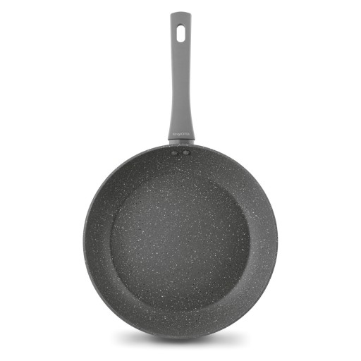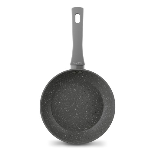 Patelnie marmurowe na indukcję Konighoffer Greys Marble 20 cm 24 cm 28 cm są aluminiowe i chronią jedzenie przed przywieraniem. Są też bardzo solidne, świetnie wyważone oraz dobrze przewodzą ciepło. Wykuto je techniką forged (na gorąco). W połączeniu z nitowanymi uchwytami soft touch dadzą ci wysoki poziom komfortu użytkowania. Ich rączki nie nagrzewają się i nie wyślizgują nawet z mokrej dłoni. Zestaw działa na każdym typie kuchenki, ponieważ ma dno indukcyjne. Sprawia ono, że robienie posiłków jest szybsze, a przy tym energooszczędne. Trwałość powierzchni smażenia 3 patelni granitowych Greys opiera się na trzywarstwowej powłoce MARBLE PLUS non-stick (dodatkowo wzmocnionej!). Nie zawiera szkodliwych substancji (np. PFOA), jest twarda oraz może znieść do 10 000 cykli ścierania (5 razy dłużej niż klasyczne patelnie nieprzywierające). Kolekcja Konighoffer Greys Marble typu stone inspiruje się surowym pięknem natury i polecana jest do wieloletniego użytku w domowej kuchni. Łatwo zadbasz o czystość takiego praktycznego kompletu patelni uniwersalnych.