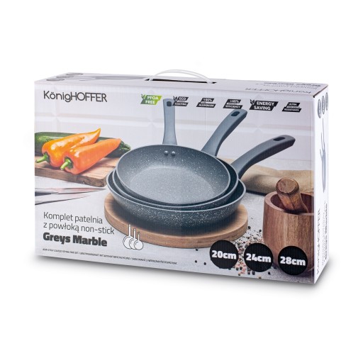 ZESTAW PATELNIA INDUKCJA NON-STICK x3 20/24/28cm Greys Marble Konighoffer