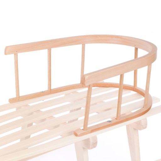 Oparcie wykonane jest z najwyższej jakości drewna bukowego, które gwarantuje trwałość i bezpieczeństwo użytkowania. Elementy drewniane zostały starannie i solidnie połączone, co sprawia że konstrukcja jest stabilna oraz odporna na uszkodzenia mechaniczne. Montaż oparcia jest szybki i łatwy, dzięki czemu każdy rodzic bez problemu poradzi sobie z jego zamontowaniem.