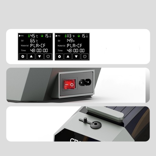 ▶ Konstrukcja z timerem i 3,7-calowy ekran dotykowy LCD: Czas nagrzewania można dowolnie ustawiać w zakresie od 0 do 48 godzin, co pozwala na całkowite wysuszenie filamentów i uzyskanie lepszych rezultatów drukowania. Suszarka wyposażona jest w 3,7-calowy ekran dotykowy ułatwiający obsługę i śledzenie warunków suszenia.