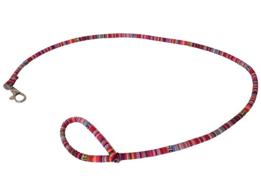 Wykonany ręcznie z wielokolorowego sznurka o szerokości 8 mm.