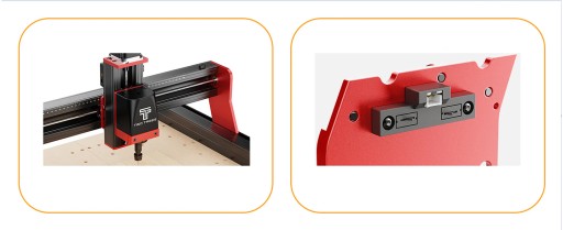 Bezpośrednie sterowanie wieloma akcesoriami: zestaw wspomagania pneumatycznego, moduł 4. osi, moduł laserowy 20 W, frezarka do drewna(Zestaw wspomagania pneumatycznego, moduł 4. osi, moduł laserowy 20 W - akcesoria do nabycia oddzielnie)