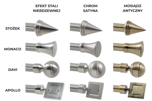 Karnisze dostępne są w trzech wariantach kolorystycznych: