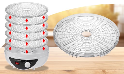 Aż 5 sit pozwala na suszenie dużej ilości produktu jednocześnie, dzięki czemu cały proces zajmuje mniej czasu.