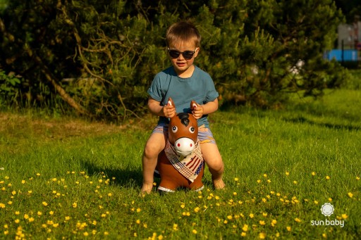 Nie ma ryzyka, że podczas skocznej zabawy skoczek się przebije. Skoczek został tak wyprofilowany aby dziecko stabilnie i bezpiecznie na nim siedziało. Miękkie wystające rogi skoczka są łatwe do trzymania a ich powierzchnia zapewnia bezpieczny chwyt. Nogi skoczka stanowią dodatkowe wsparcie.