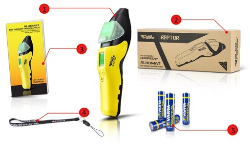 - Skalibrowany i gotowy do użycia alkomat RAPTOR