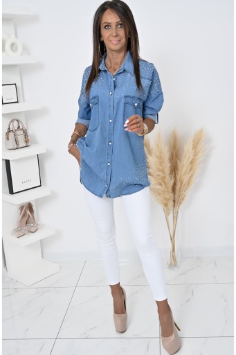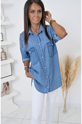 ДЖИНСОВАЯ РУБАШКА ОВЕРСАЙЗ С УКРАШЕНИЕМ! М