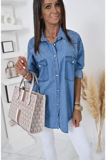 ДЖИНСОВАЯ РУБАШКА ОВЕРСАЙЗ С УКРАШЕНИЕМ! XL