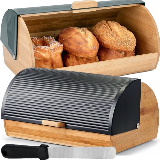 KOMPLET Nowoczesny chlebak, pojemnik na pieczywo + szpatułka