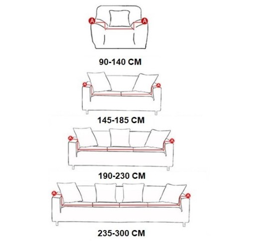 Przy wyborze pokrowca prosimy dokładnie zmierzyć kanapę zgodnie ze schematem pokazanym na zdjęciu