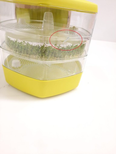 UNIKALNY SYSTEM PODLEWANIA: Rozłóż nasiona na powierzchni tacy i dodawaj wodę dwa razy dziennie. Wystarczy jedna szklanka. Nadmiar wody zbiera się w dolnej misce, którą należy regularnie opróżniać.