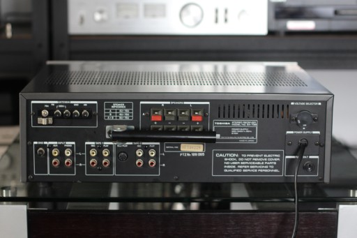 Amplituner Toshiba SA-735 . Amplituner w pełni sprawny , wszystkie funkcje oraz wyjścia w pełni sprawne . Tuner odbiera w stereo , potencjometry bez jakichkolwiek oznak trzeszczenia . Piękny stan zachowanie bez rys czy uszkodzeń . Oryginalne podświetlenie .