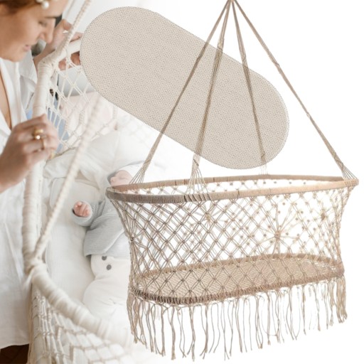 Dzięki zastosowaniu splotu Makrama na całej powierzchni kołyski, gwarantuje ona świetną cyrkulację powietrza zarówno od spodu, jak i na bokach!