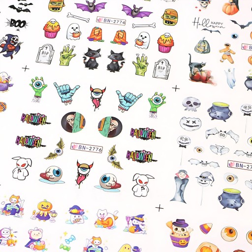 ВОДНЫЕ НАКЛЕЙКИ для нейл-арта, лист из 12 рисунков черепов на Хэллоуин.