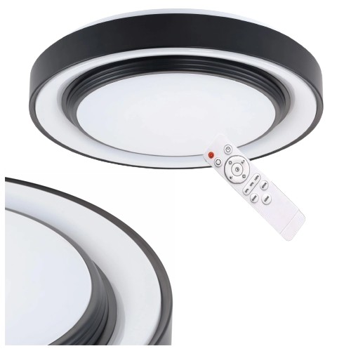 Lampa plafon łazienkowy czarny 72W CCT z możliwością ściemniania, pilotem i uchwytem do pilota oraz funkcją pamięci barwy to nowoczesne, funkcjonalne i stylowe rozwiązanie oświetleniowe. Idealna do różnorodnych pomieszczeń, oferuje szeroki zakres regulacji oświetlenia, odporność na wilgoć oraz łatwość montażu i użytkowania.