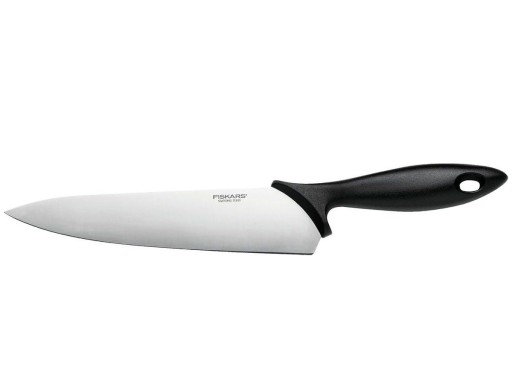 W ofercie firmy Fiskars znajduje się mnóstwo praktycznych akcesoriów kuchennych. Jednym z nich jest praktyczny nóż szefa kuchni, który nadaje się do codziennego przygotowywania posiłków, ostrza wykonane ze stali nierdzewnej. Oferowany nóż należy do popularnej kolekcji Essential, dawniej zwanej Kichen Smart. Linia ta została stworzona do codziennego użytku, produkt ten znajdzie zastosowanie w każdym gospodarstwie domowym. Rękojeść akcesoriów Essential / Kitchen Smart wykonana została z niezwykle odpornego polipropylenu.